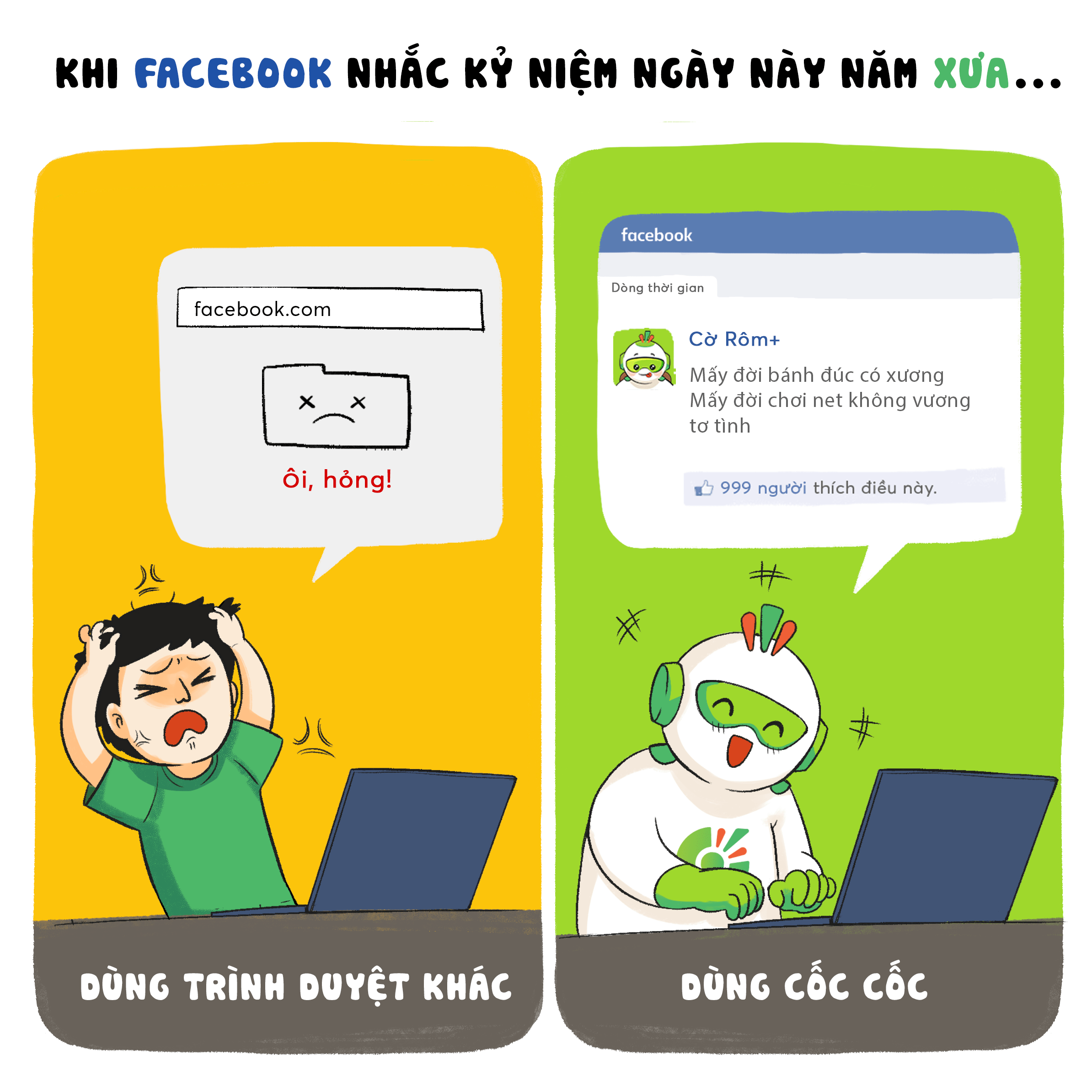 Màu xanh của Cốc Cốc đã có mặt trong tuổi trẻ của nhiều người Việt. Ở những ngày đầu, chắc hẳn ấn tượng mà nhiều người có về Cốc Cốc là một trình duyệt có khả năng tự động thêm dấu tiếng Việt và giúp tải nhanh nhạc, video trên mọi trang web. Nhiều bạn cũng đã chọn lướt web cùng Cốc Cốc để có thể truy cập Facebook và kết nối với bạn bè… Đó hẳn là những kỷ niệm thật đẹp giữa bạn và Cốc Cốc.