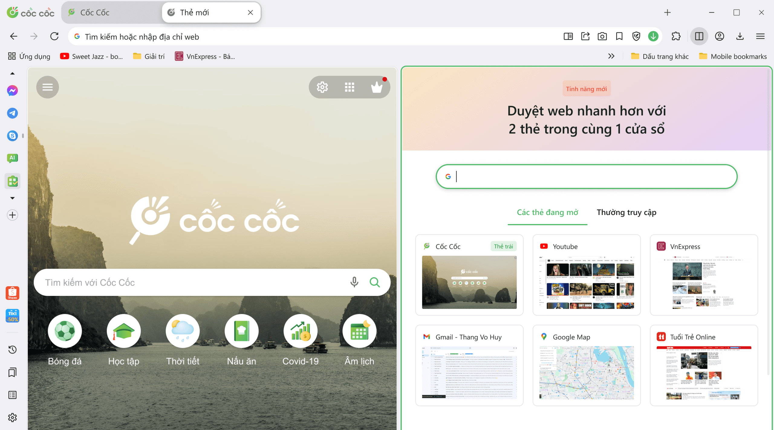 Đa nhiệm với Thanh bên vẫn chưa đủ tiện? Vậy thì bạn phải thử chế độ Cửa sổ chia đôi liền. Cập nhật hoặc tải Cốc Cốc phiên bản mới nhất để trải nghiệm ngay!