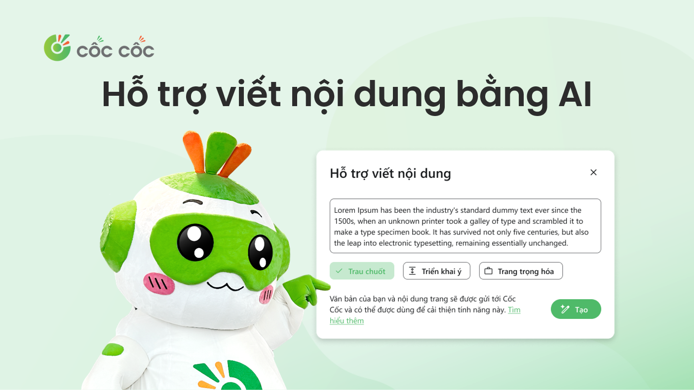Bạn từng mất nhiều thời gian để viết một email cho công việc, một bài đăng mạng xã hội hay đơn giản là một đoạn văn bằng tiếng Anh nhưng vẫn chưa thật sự tự tin? Tin vui là giờ đây đã có Cốc Cốc hỗ trợ bạn.
