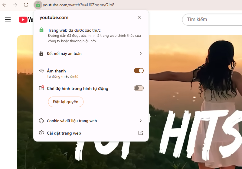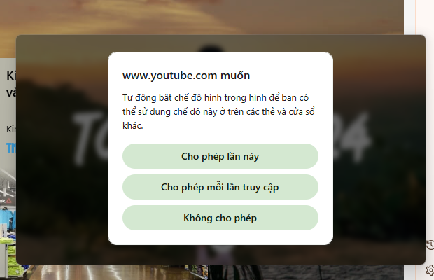 Bước 3: Bật video trên YouTube. Khi chuyển sang tab mới, thông báo yêu cầu quyền truy cập sẽ hiện ra. Bạn có thể lựa chọn Cho phép lần này hoặc Cho phép mỗi khi truy cập.